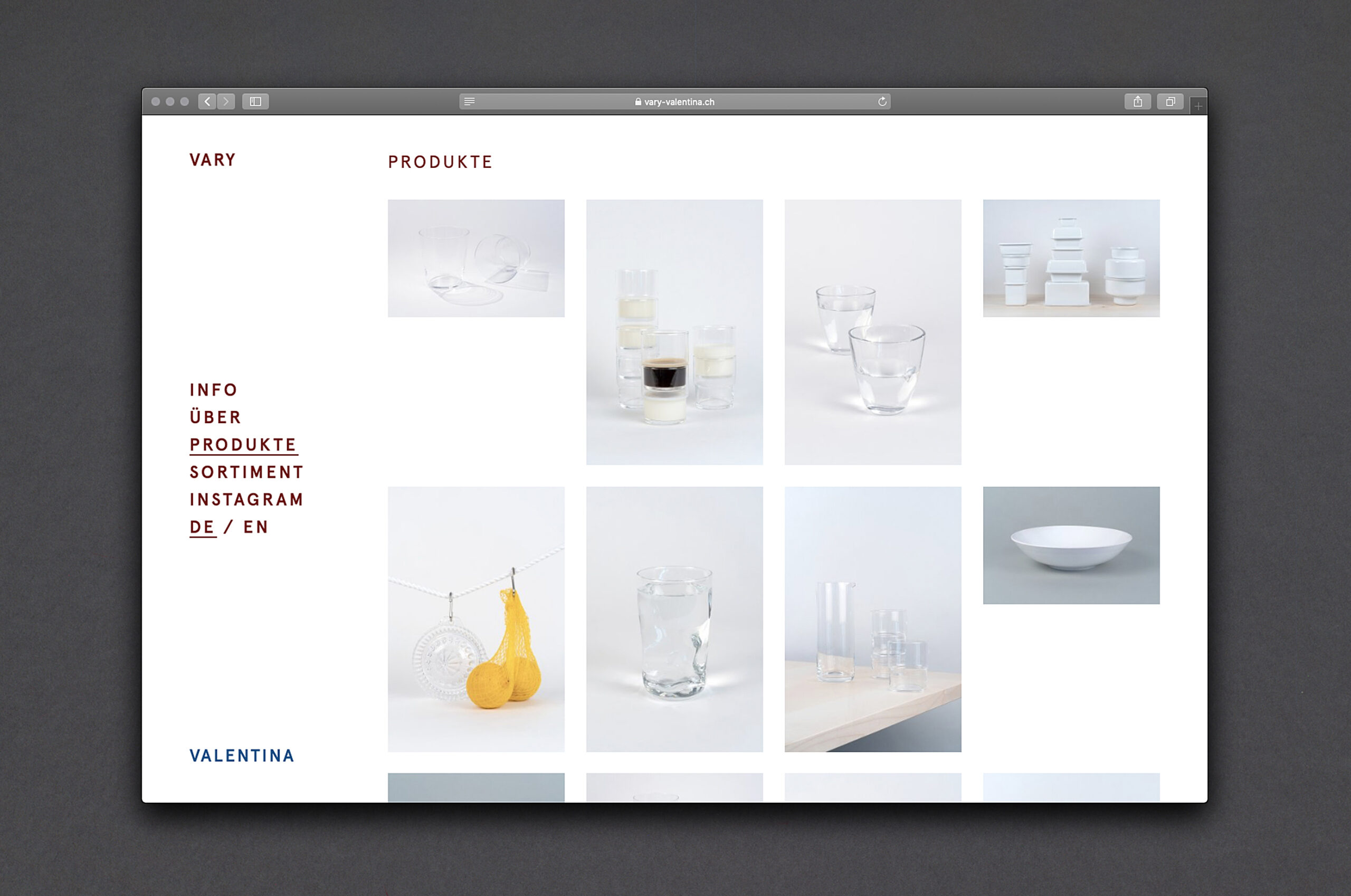 „Vary“ verkauft sinnvolle Gebrauchsgegenstände für den Alltag und steht für die Wertschätzung ästhetischer und funktionaler Qualitäten. In diesem Sinne ist auch der visuelle Auftritt für den kleinen Laden in Winterthur gestaltet: spielerisch in Schrift, Farbe und Form, mit vielseitig kombinierbaren Elementen und aus hochwertigen, ressourcenschonenden Materialien. „Vary“ teilt seine Website mit „Valentina“, einen nebenan gelegenen Geschäft für originalen Vintage-Schmuck.